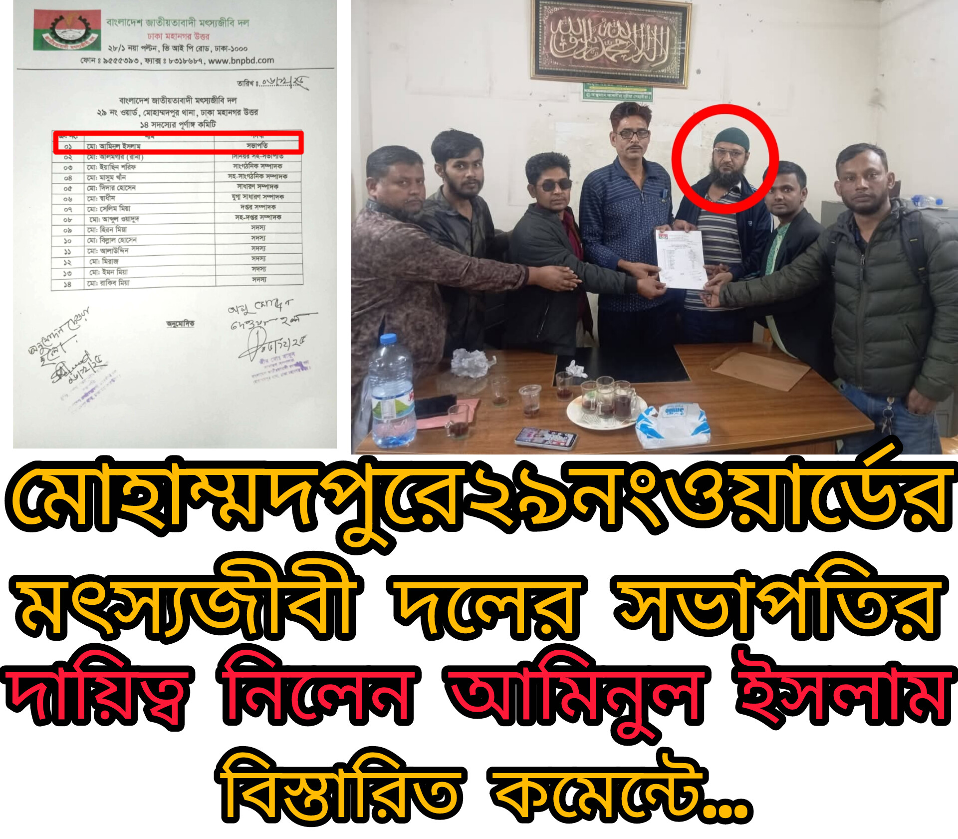 মোহাম্মদপুরে ২৯ নং ওয়ার্ডের মৎস্যজীবী দলের সভাপতির দায়িত্ব নিলেন আমিনুল ইসলাম